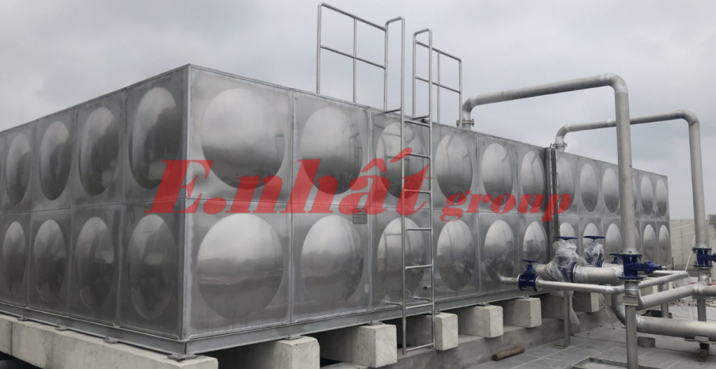 - Vật liệu: thép mạ kẽm nhúng nóng ≥275g/m² hoặc inox SUS304/316. Tại E.Nhất, bể nước lắp ghép được chế tạo từ Inox POSCO cao cấp nhập khẩu từ Hàn Quốc.